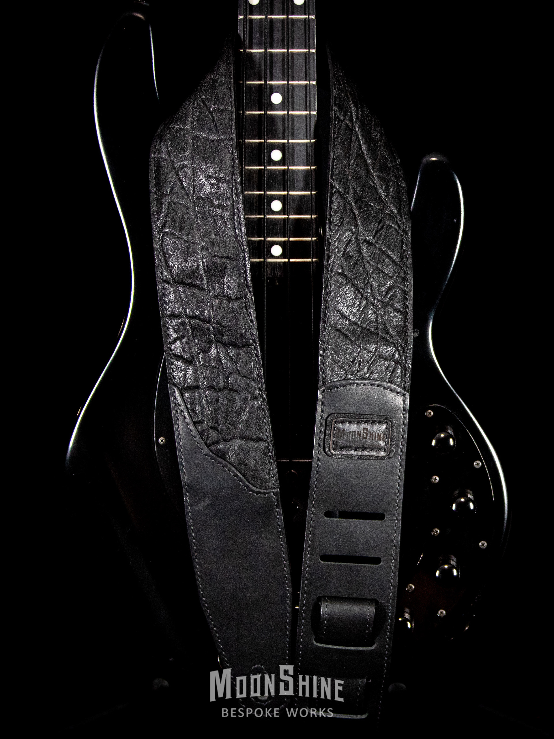 This bespoke guitar strap is crafted from ethically sourced elephant leather, chosen for its unmistakable texture, strength, and natural character. The grain tells its own story—deeply creased, organic, and impossible to replicate—making each strap truly one of a kind.