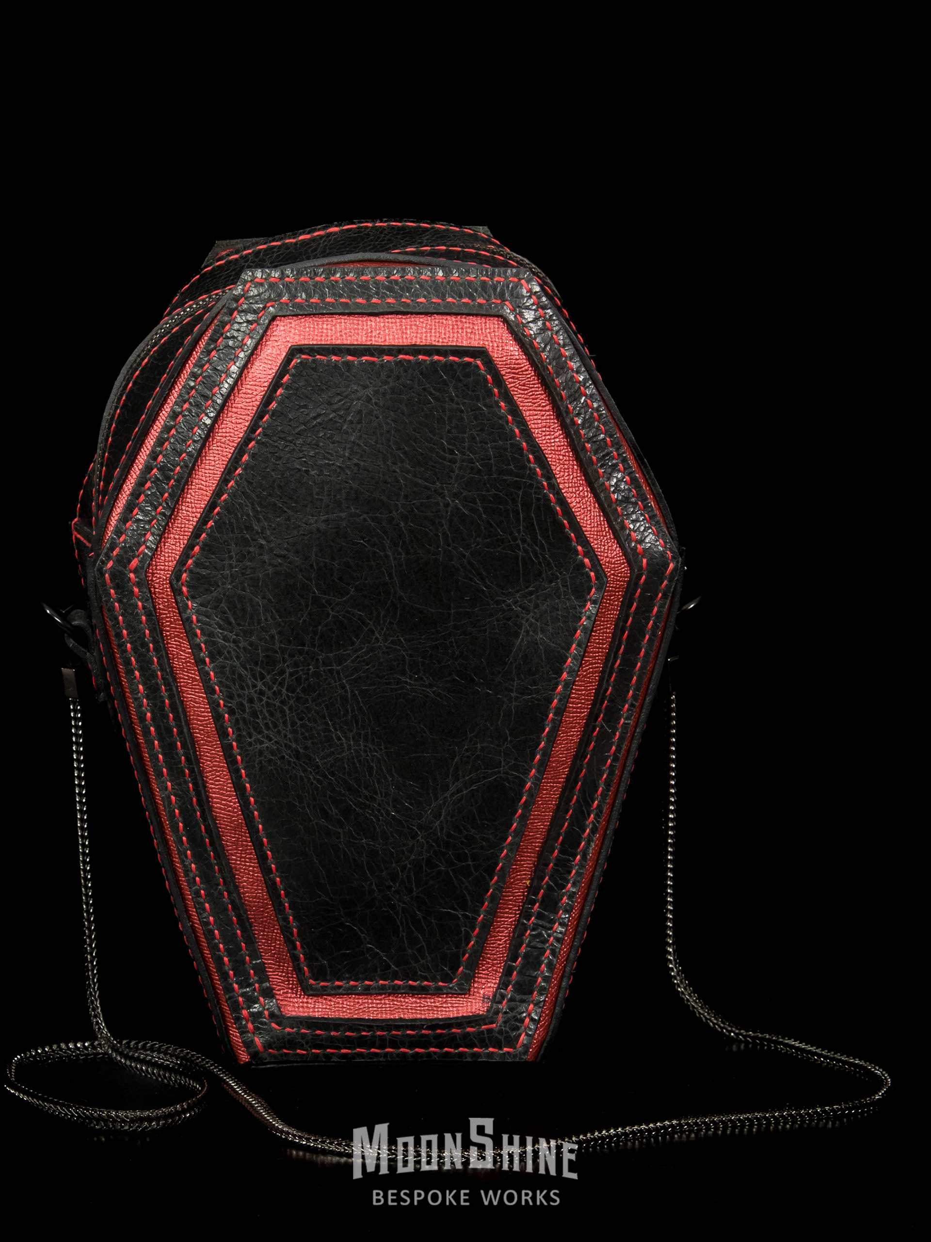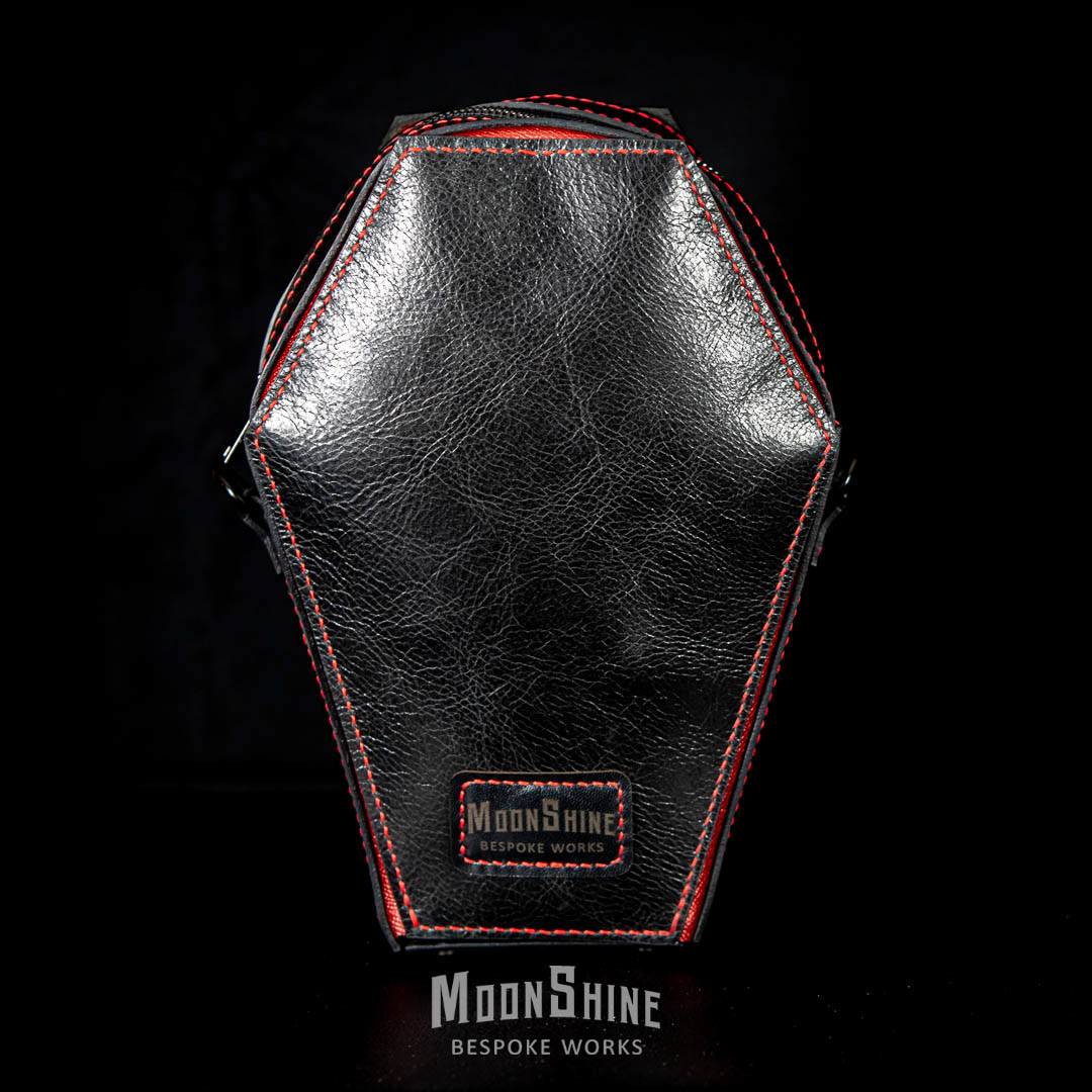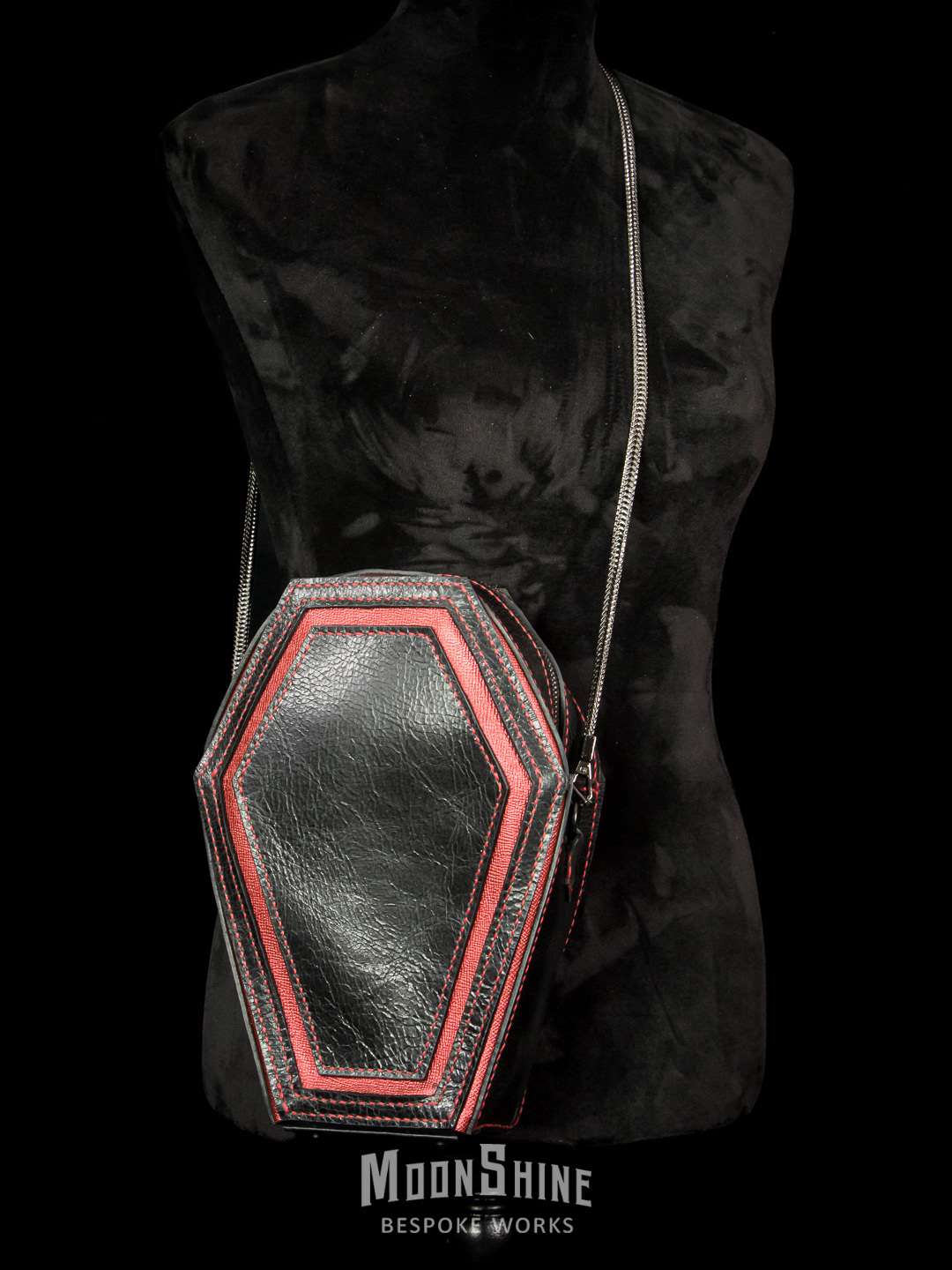 Embrace spooky vibes year-round with this unique handmade coffin bag! Crafted with meticulous attention to detail, this bag is perfect for those who love to stand out with a touch of gothic flair.